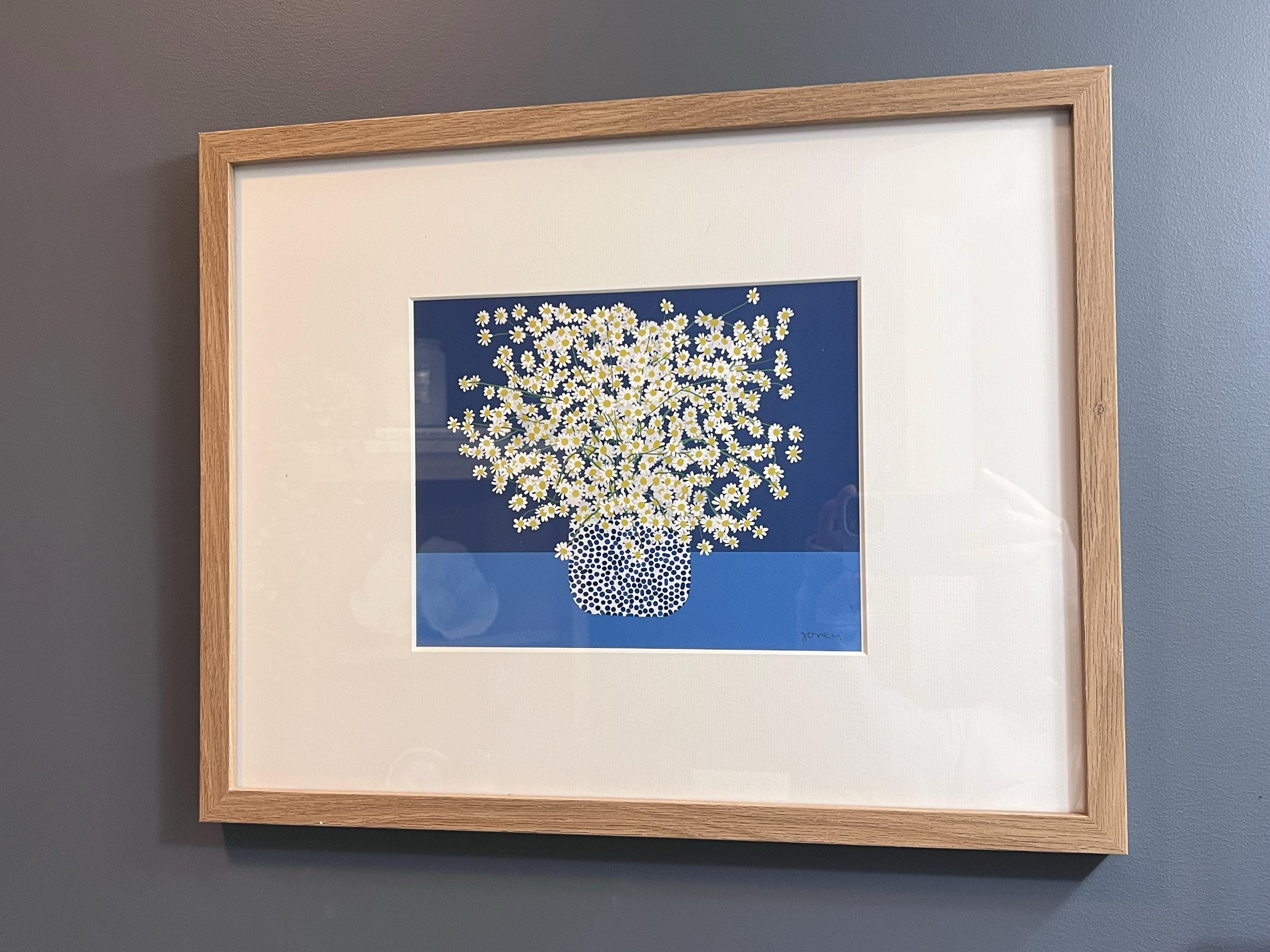 This Chamomile Flower Landscape Still Life Art Print is cheerful and soothing, just like the flowers themselves and nice cup of chamomile tea. I will make your print to order in my studio. I print on heavyweight cold press paper using archival inks and sign the bottom corner of every print. The 8x10 and 16x20 inch unframed prints are sized to fit the openings of standard ready-made frames. For framed pieces, I use frames made from sustainably-farmed solid maple and cover the art with framing-grade acrylic.