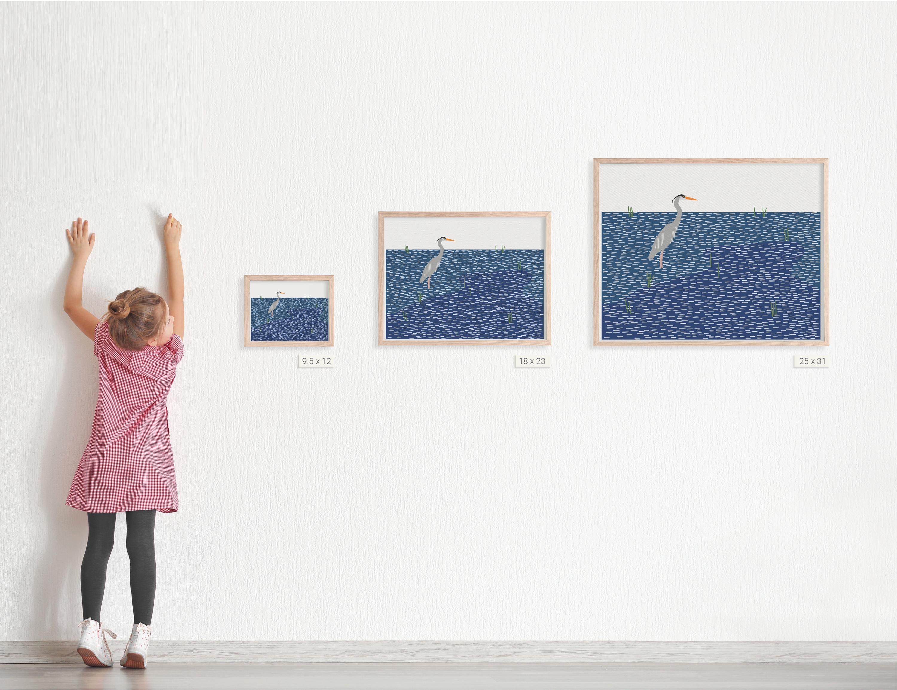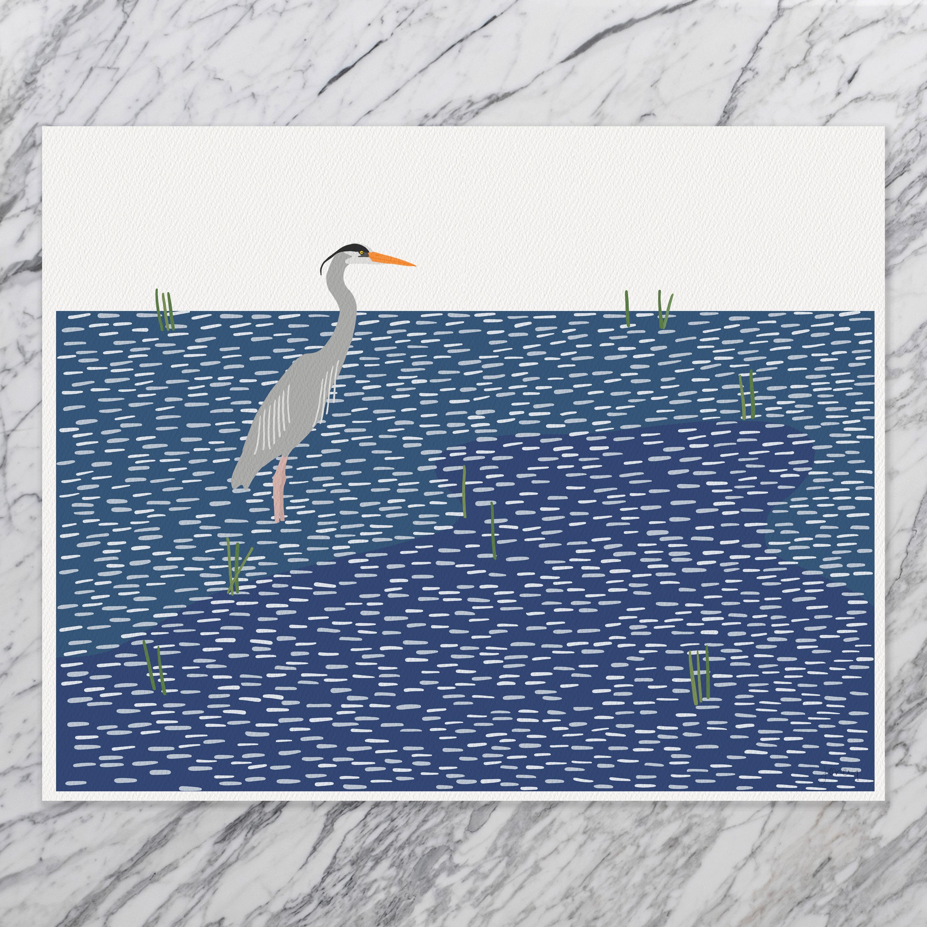 Capture the quiet power of the coast with this Heron on Windy Water Art Print by Jorey Hurley. This artwork features a graceful heron standing tall against the rippling surface of the water, its calm presence contrasting beautifully with the motion of the wind and waves. The minimalist composition and cool, coastal palette bring a sense of openness and serenity to any room.
