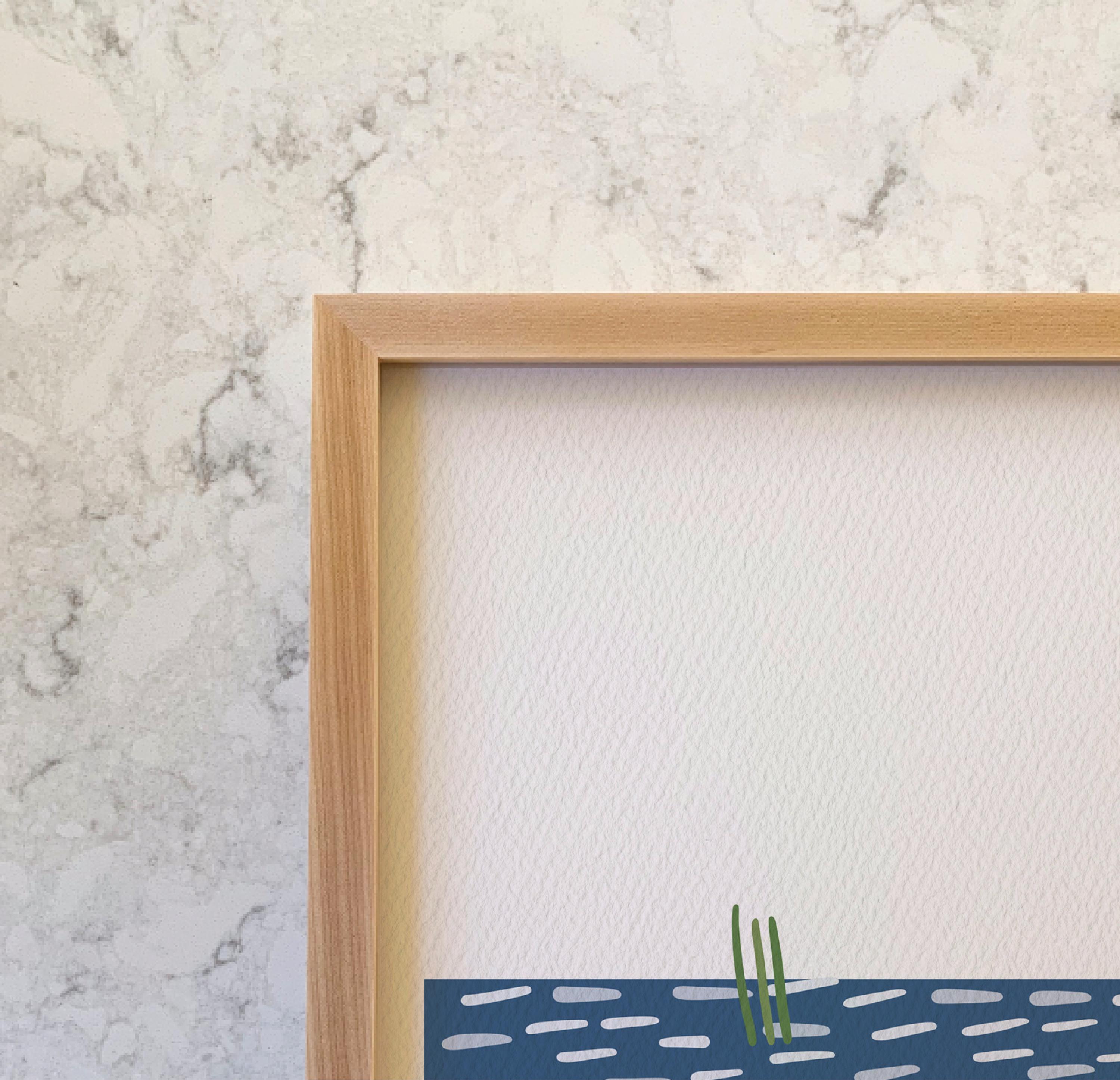 Framed prints include a natural maple frame and hanging hardware