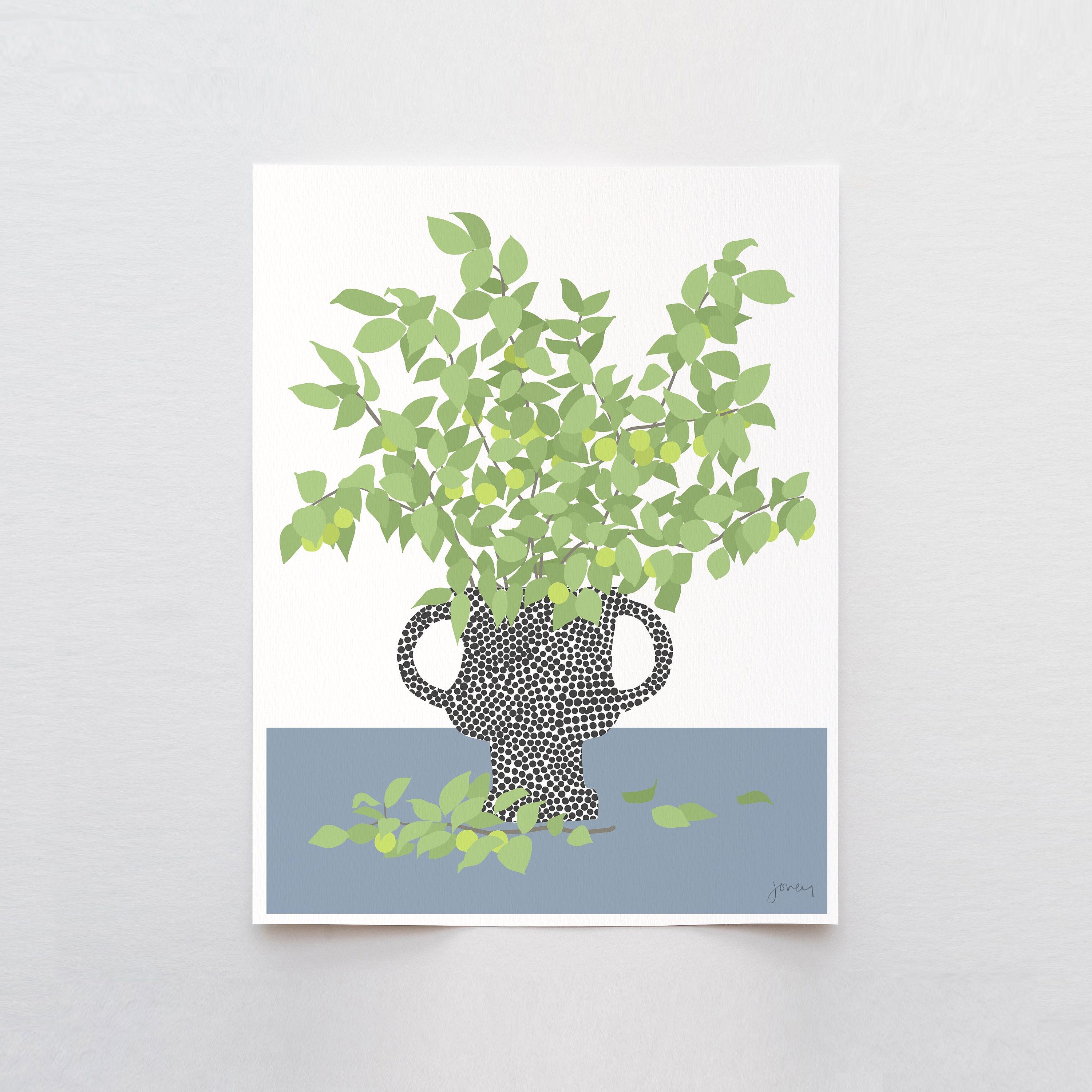 Plum Branches Still Life Art Print – Minimalist Botanical Wall Art, Modern Nature Decor