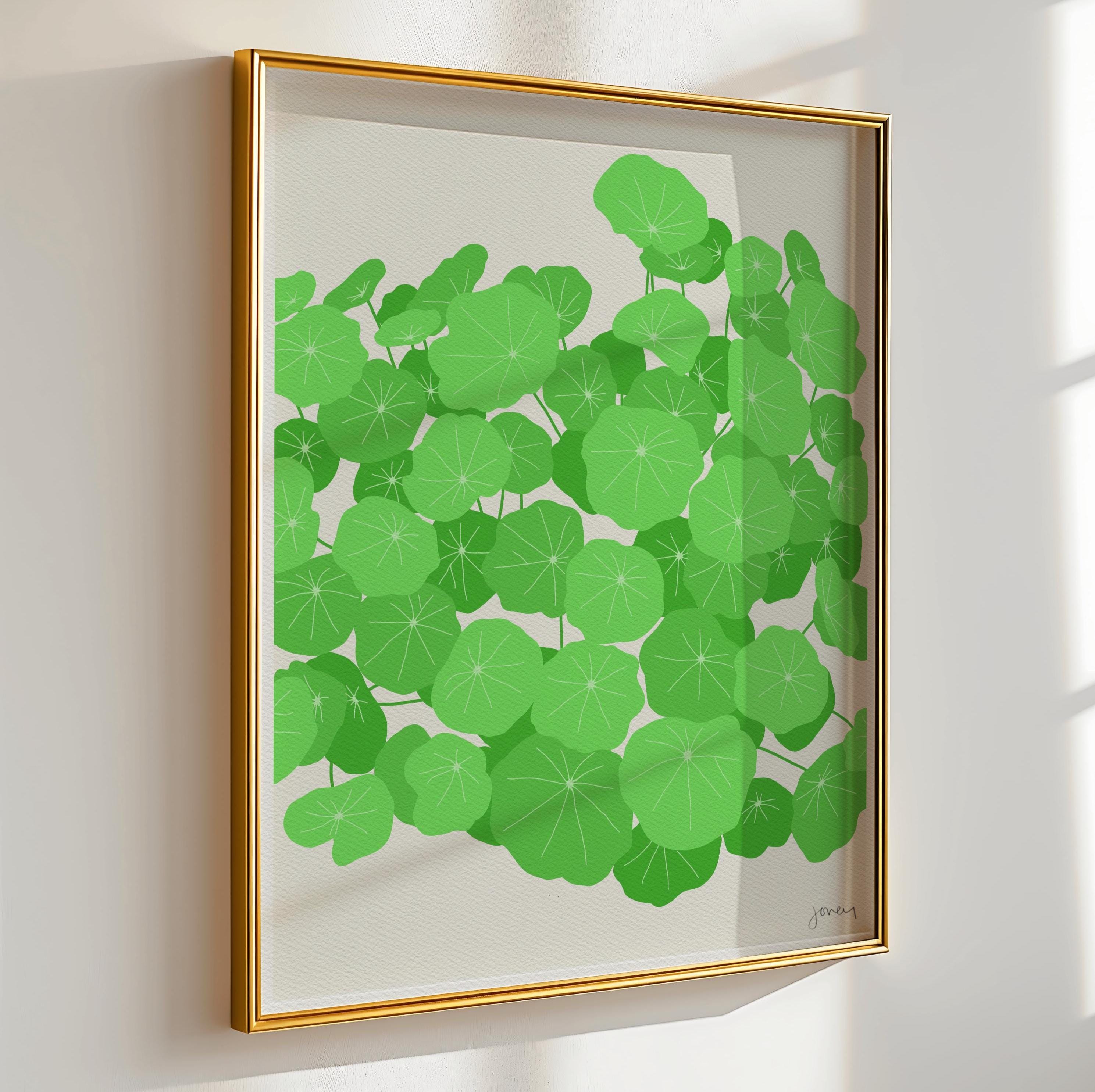Relish the bright green of springtime with my "Nasturtium Leaves Art Print." Crafted with care, this artwork showcases the calming shapes and vibrant color of the nasturtium leaves.